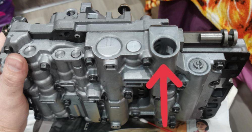 Всем доброго дня. Начала чудить акпп, пропала задняя. Снял гидроблок, почистил и обнаружил пустующее место под клапан? Там должно что-то быть, или нет?